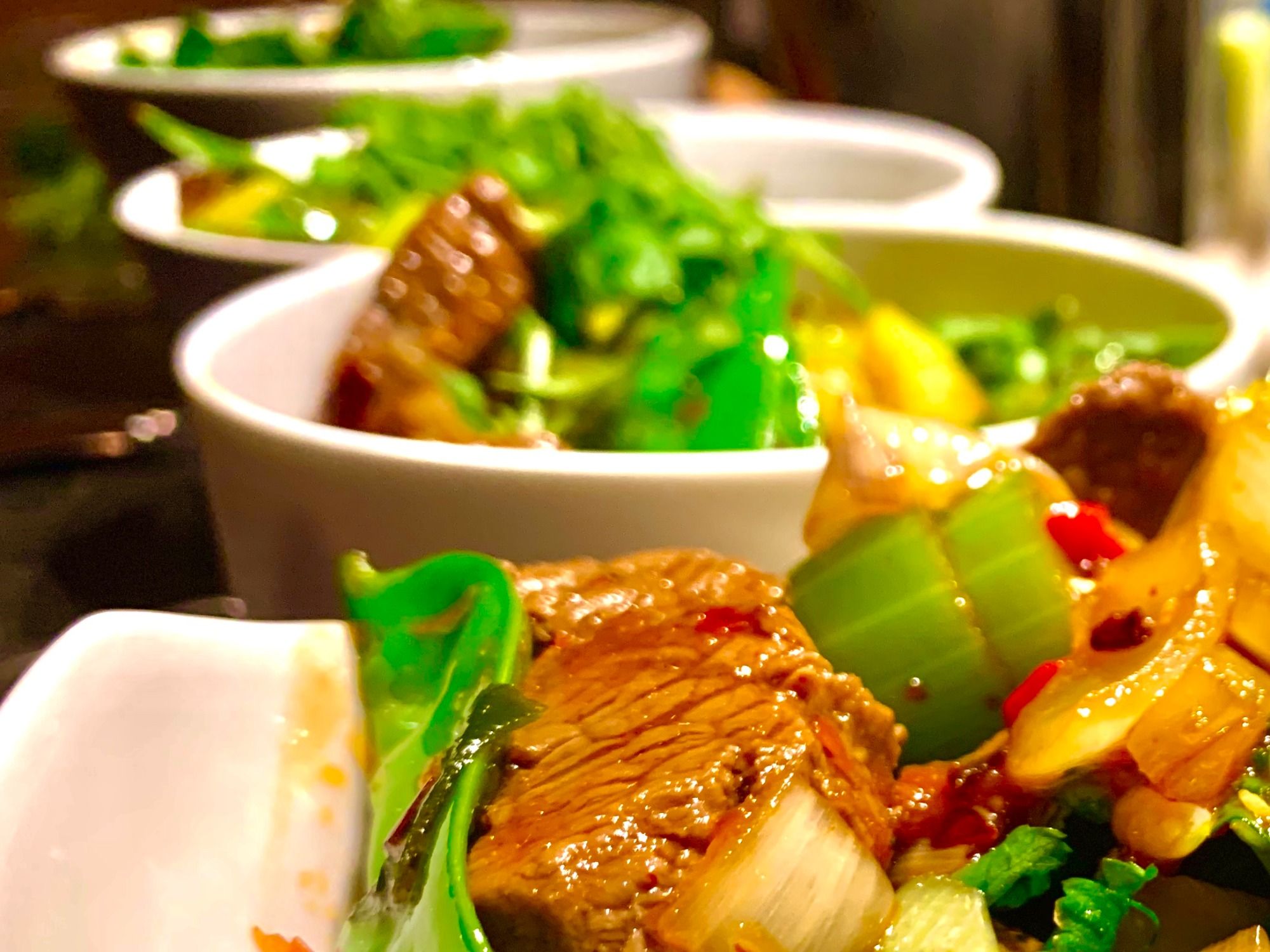 Freu Dich auf die asiatische Köstlichkeit Miang Kham, handgeklopftes Carpaccio mit wilden Kräutern, das ultratiefe Aroma einer echten Ramen Shoyu Suppe und den süchtig machenden Geschmack eines scharfen Rindfleisch Salates.